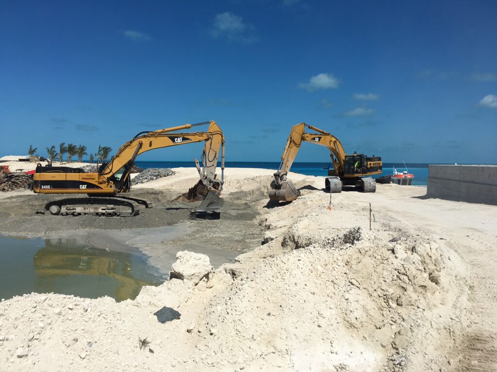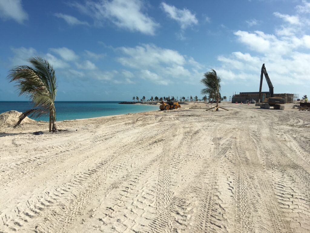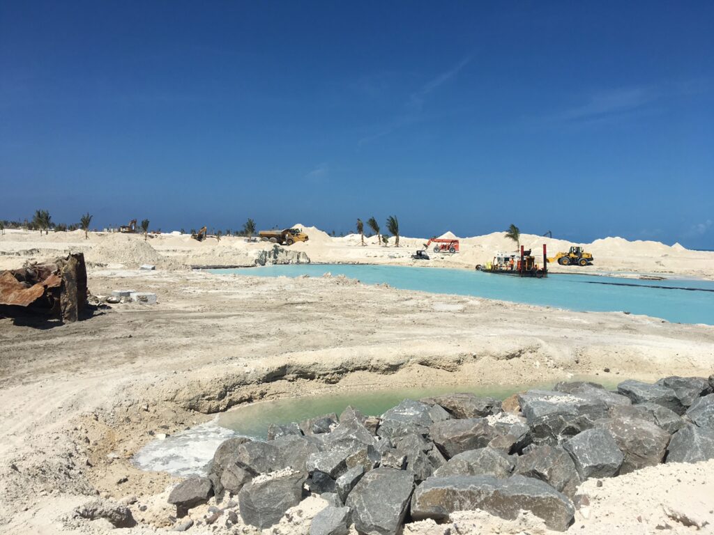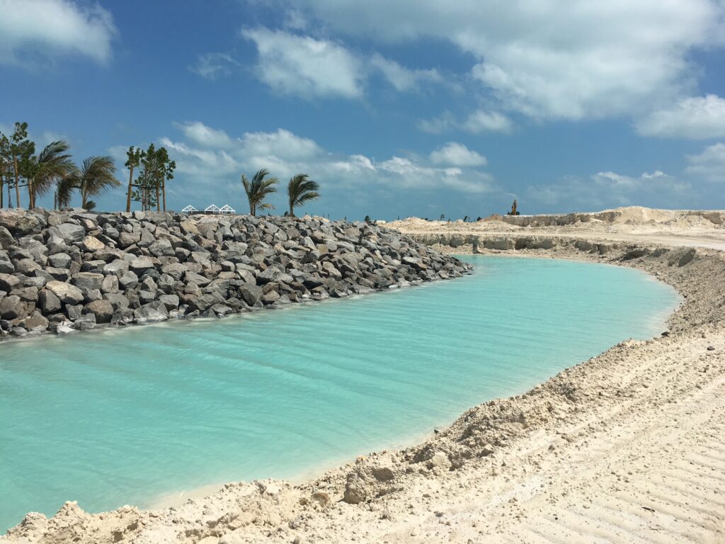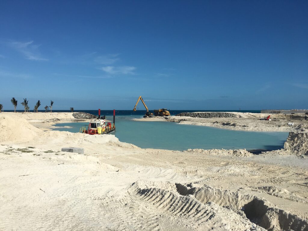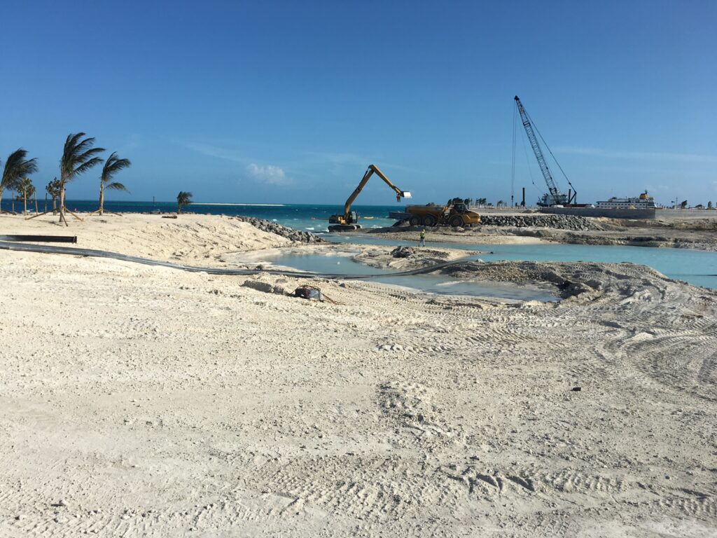 A large scale terraforming project for the development of a cruise destination resort.