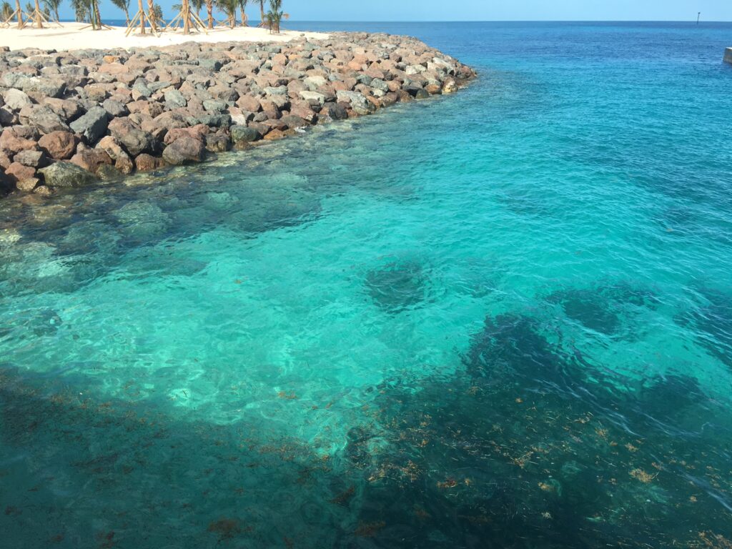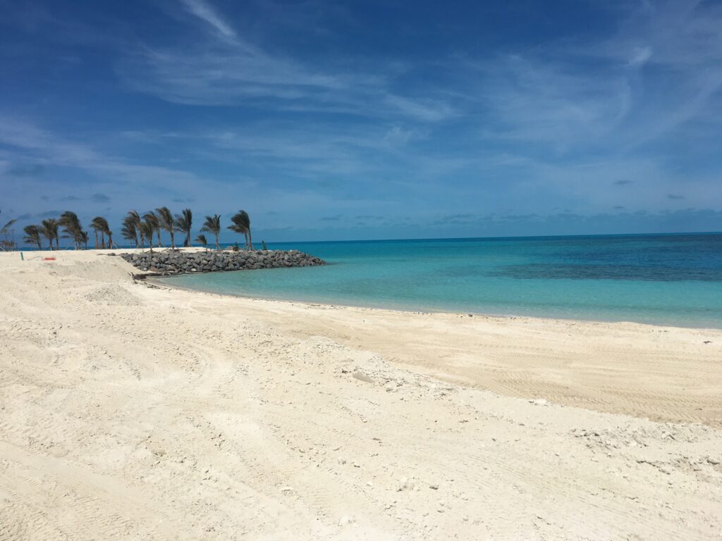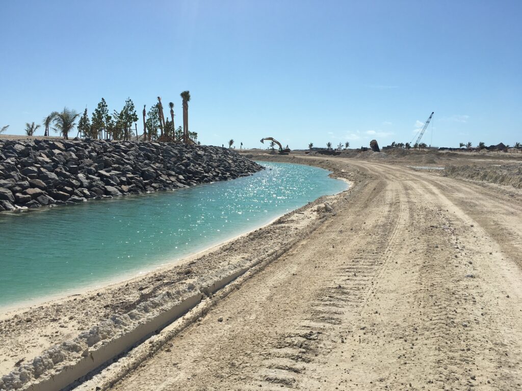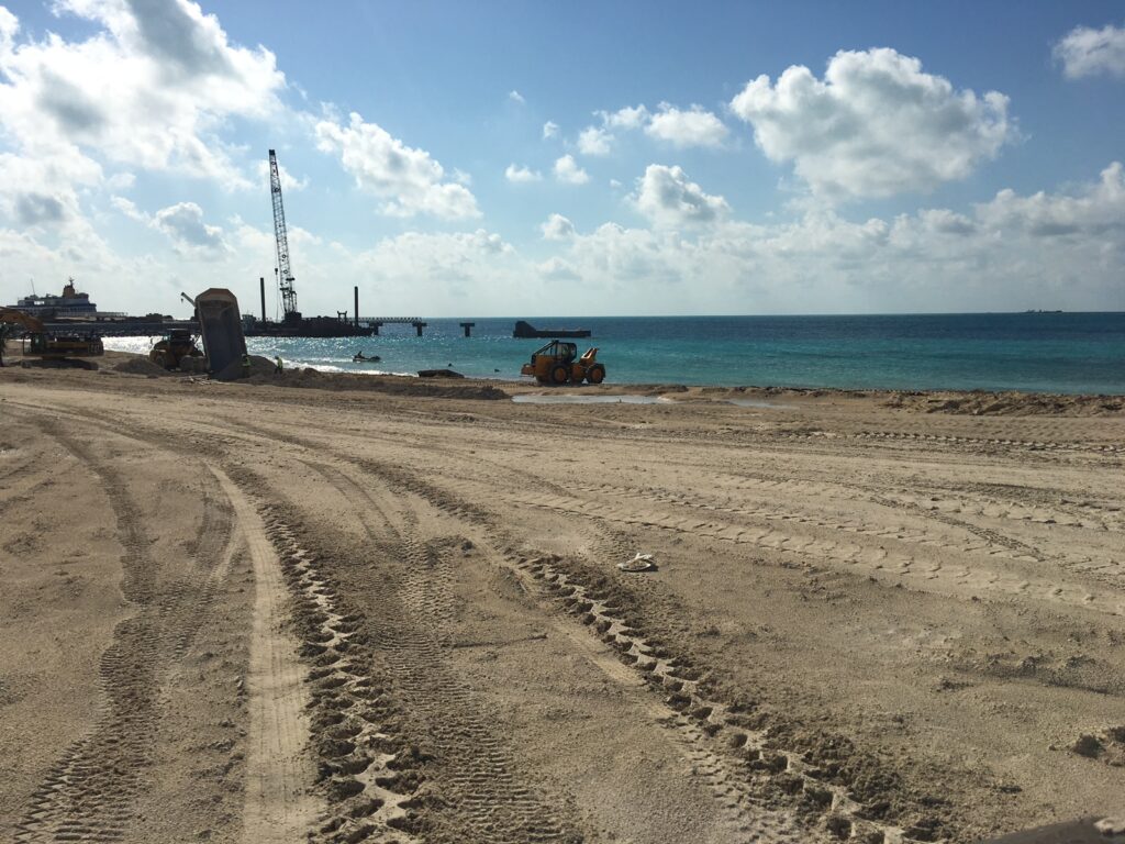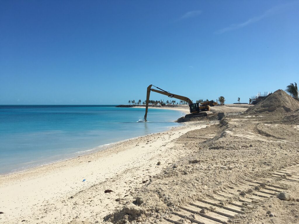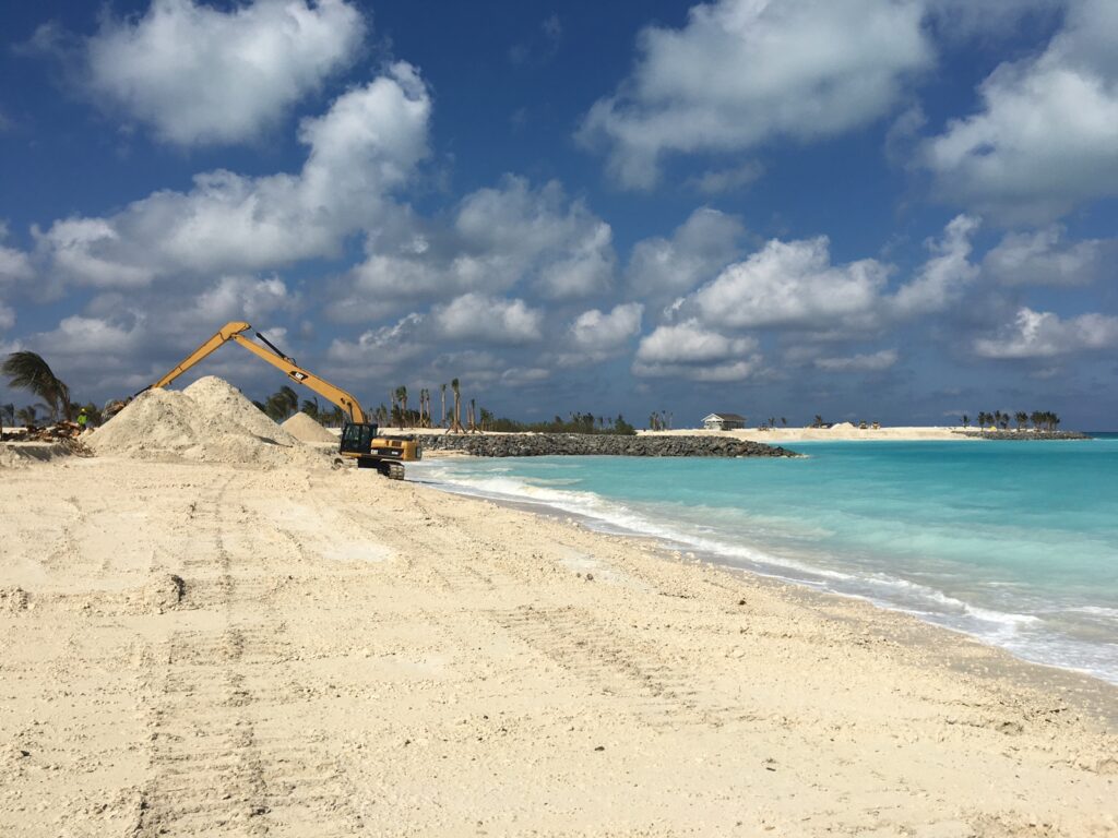 A large scale terraforming project for the development of a cruise destination resort.