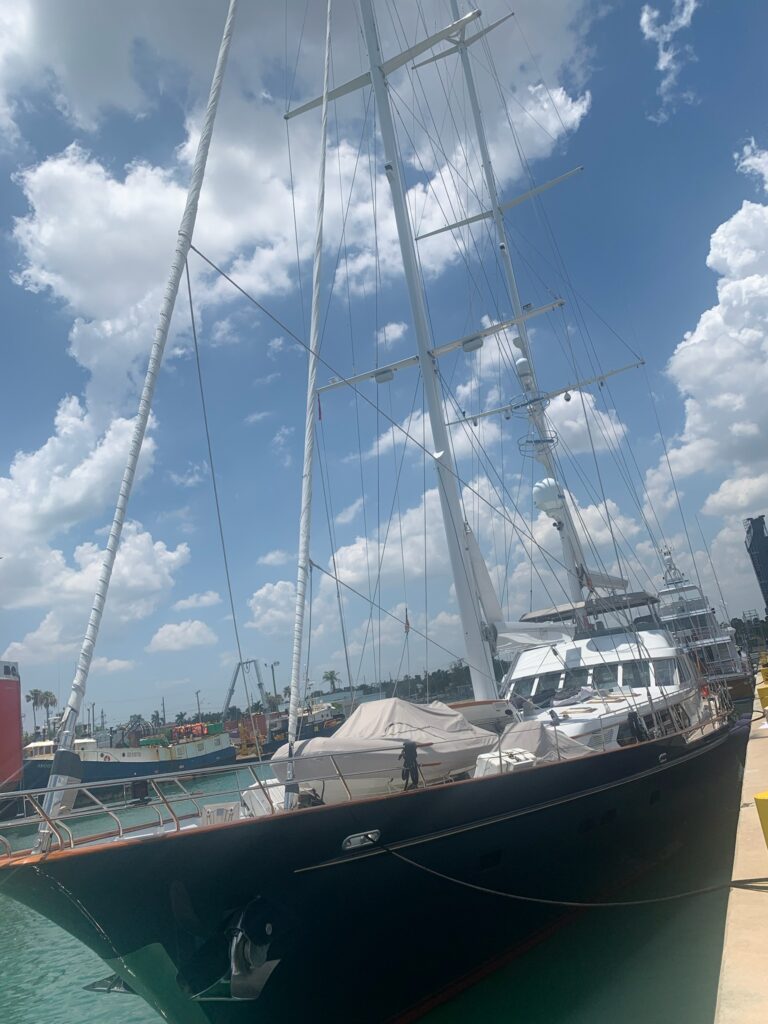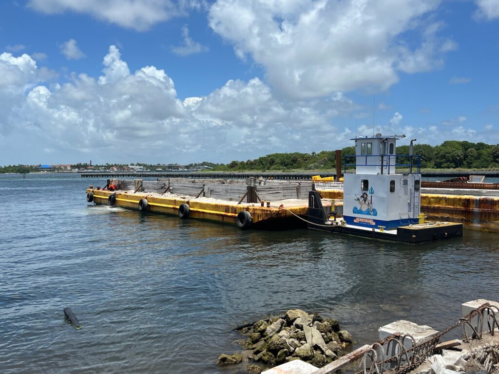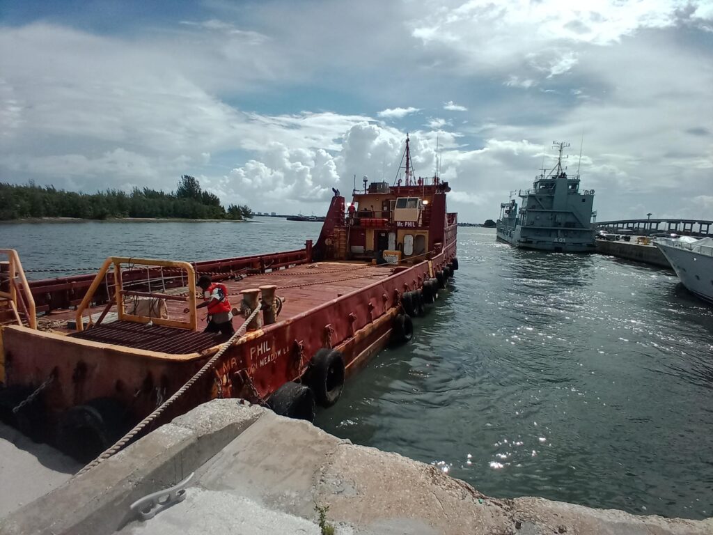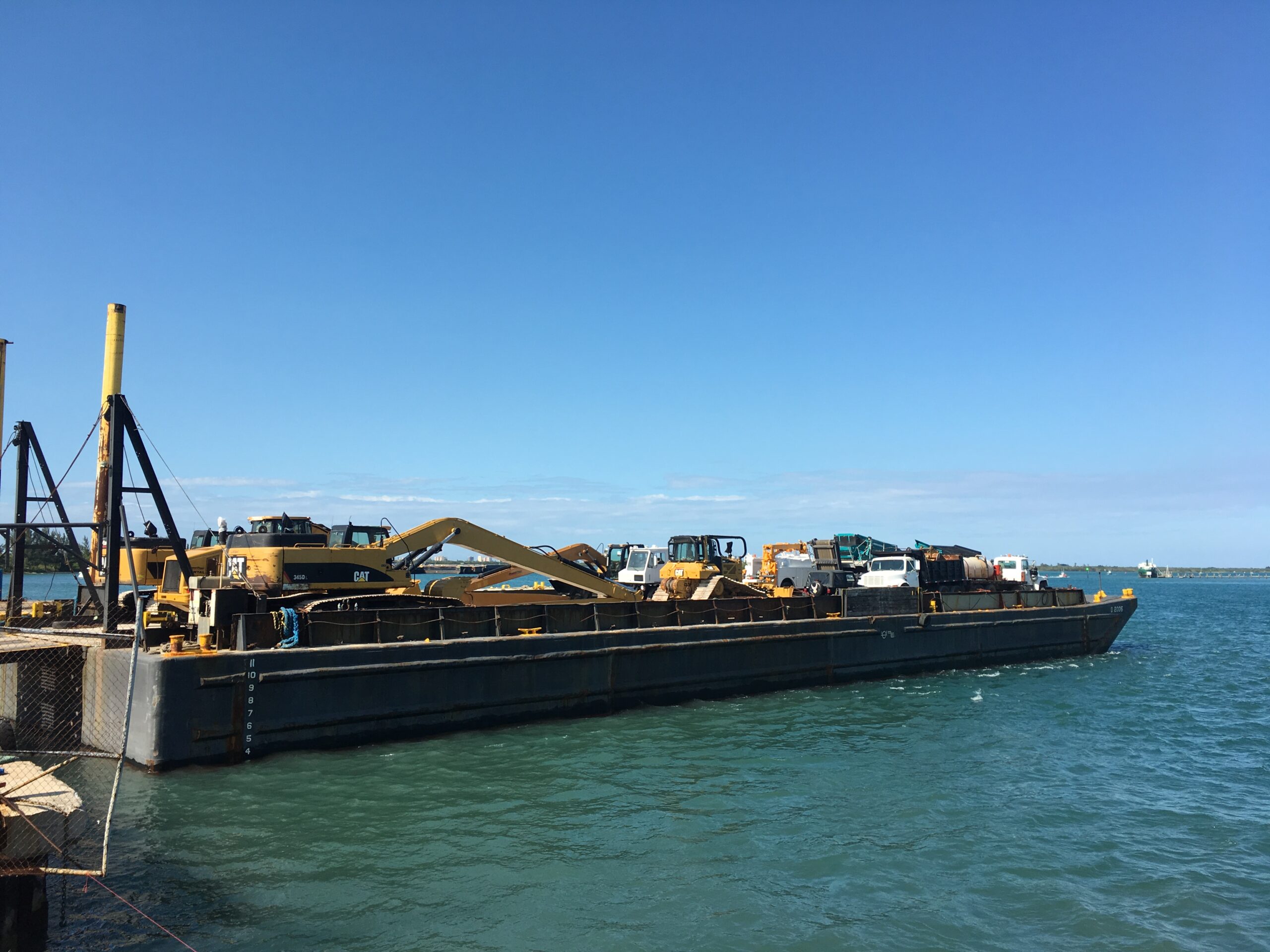 A flotilla of dredge support vessels from Texas left long dormant in Miami. Towed to Fort Pierce to be restored at Fort Marine.