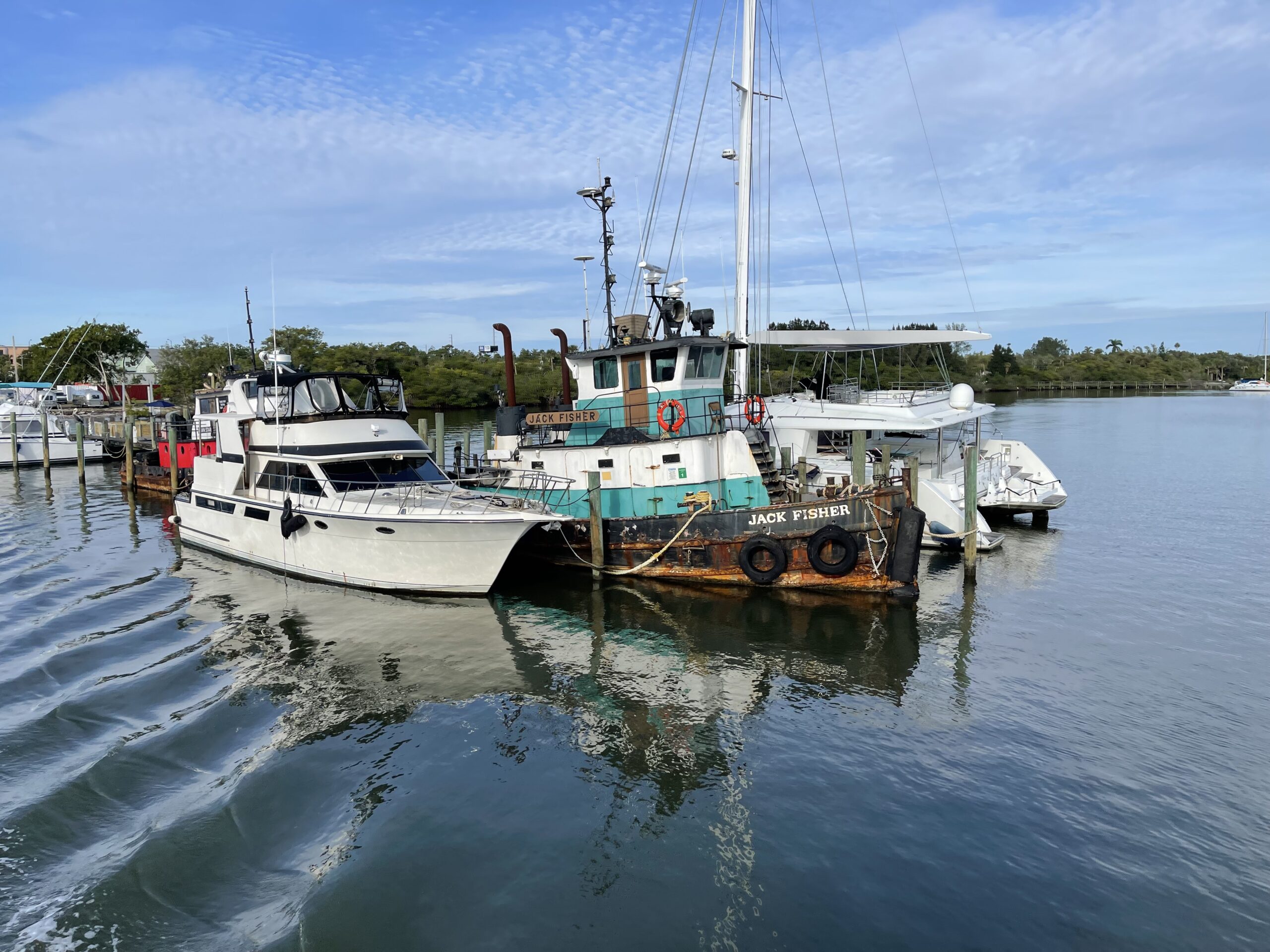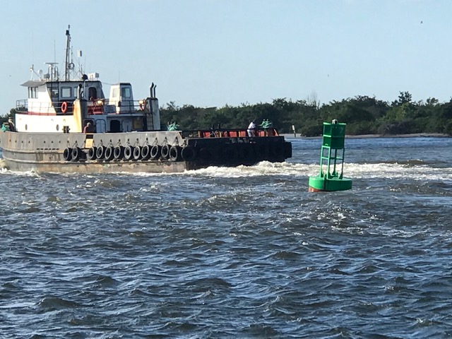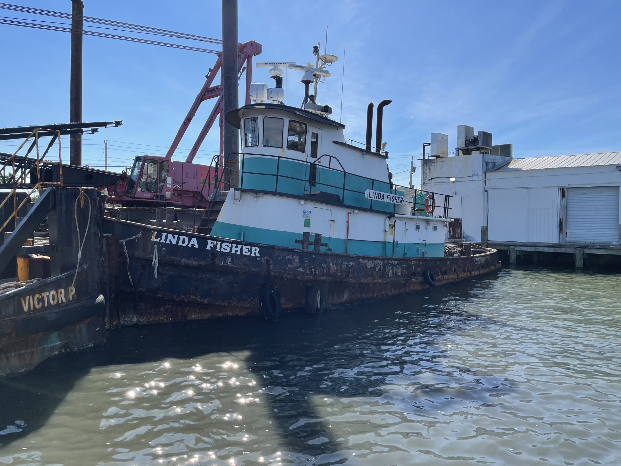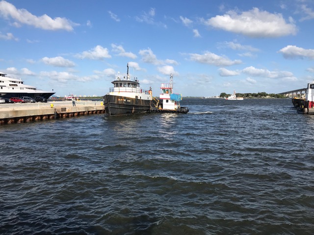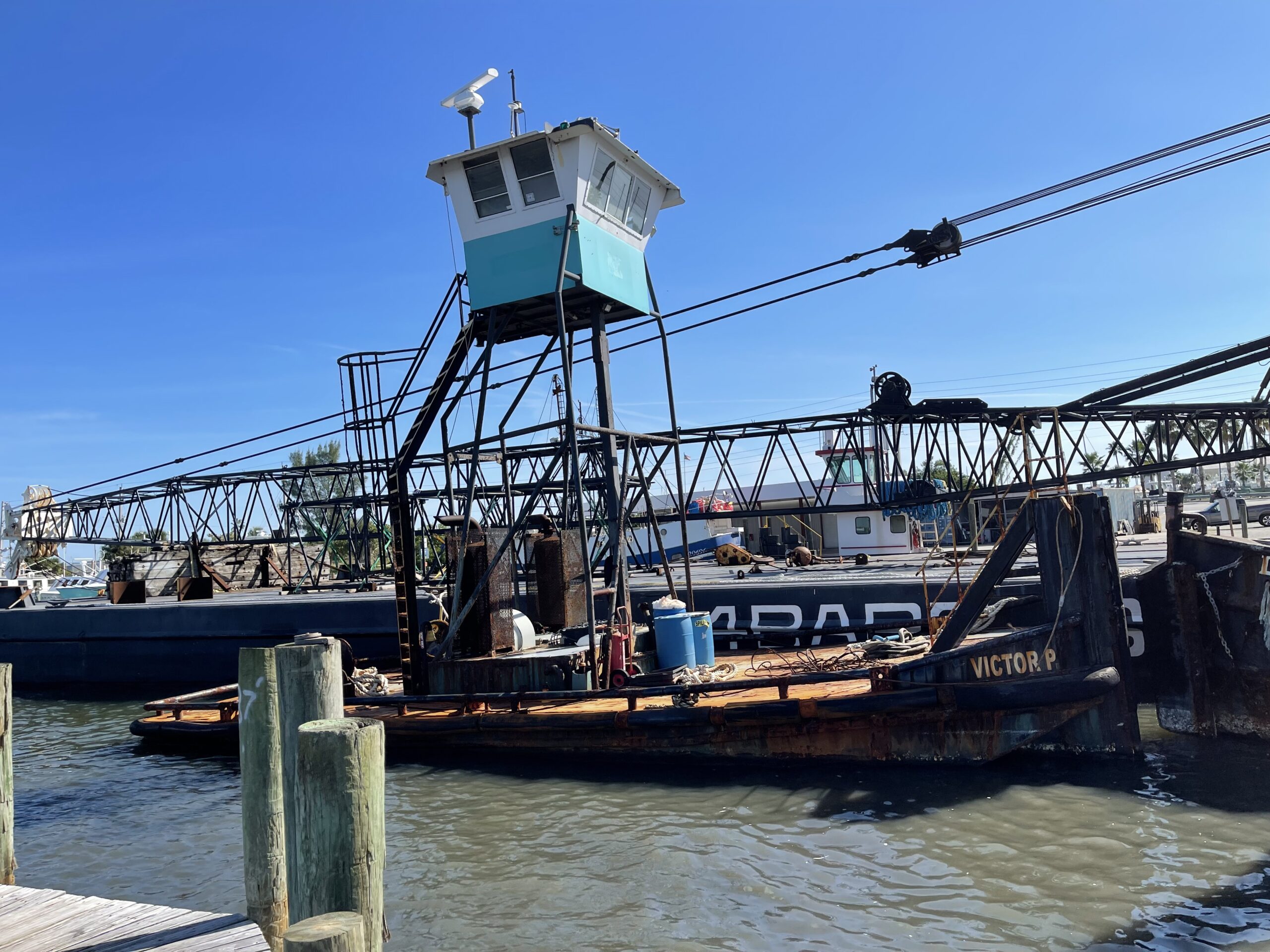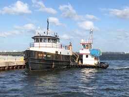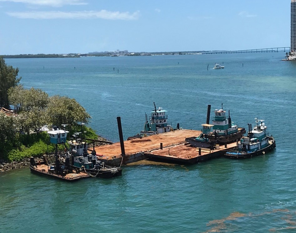 A flotilla of dredge support vessels from Texas left long dormant in Miami. Towed to Fort Pierce to be restored at Fort Marine.