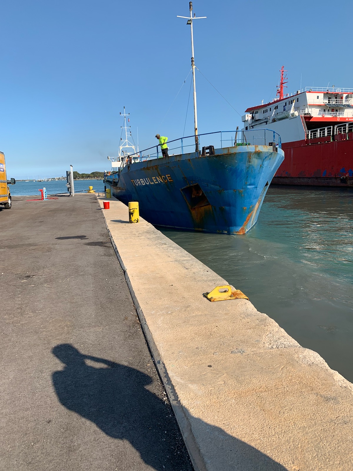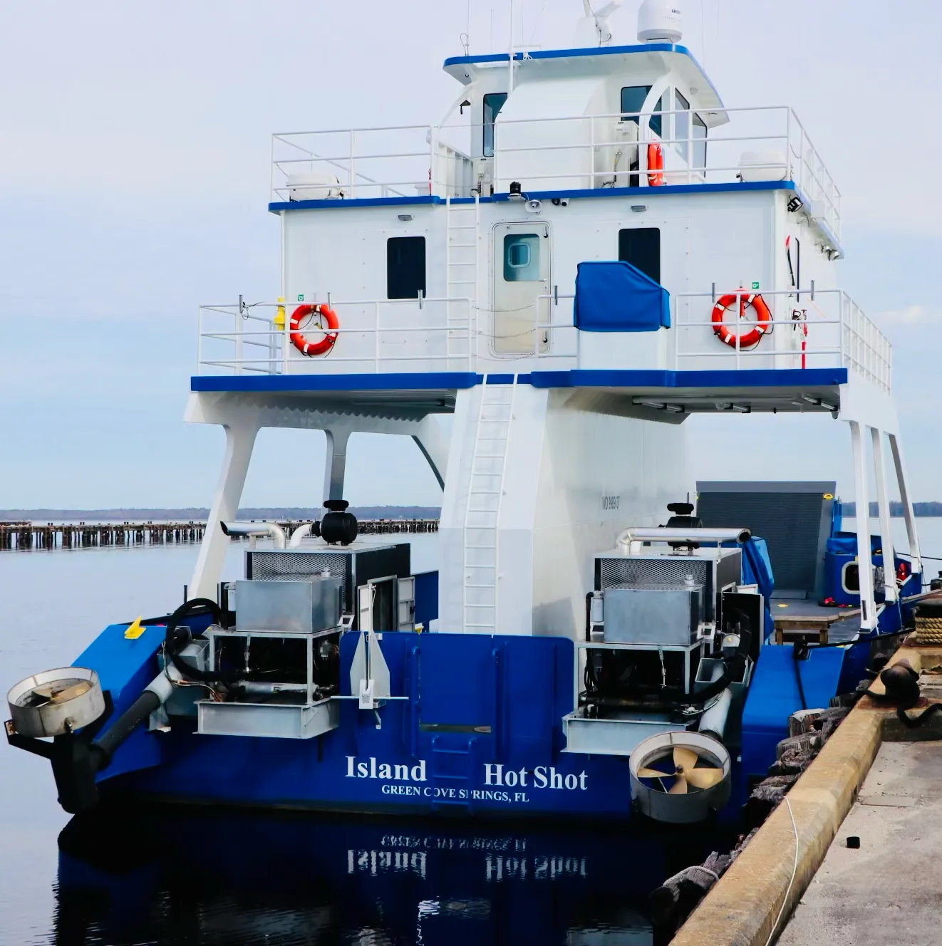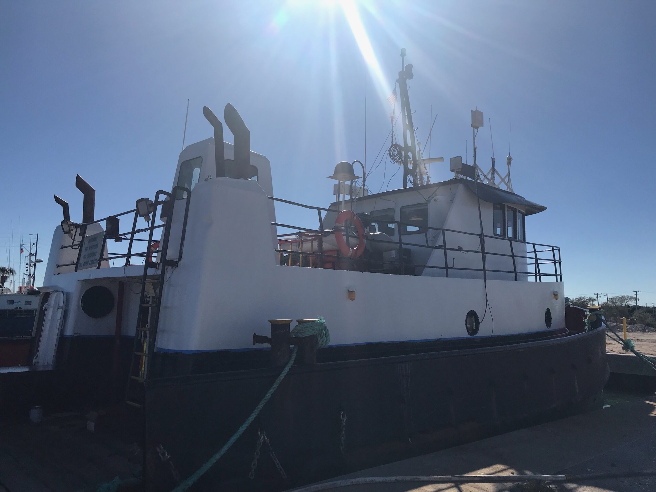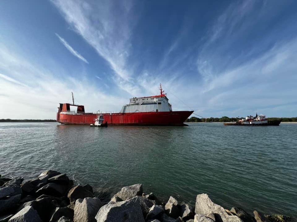 A flotilla of dredge support vessels from Texas left long dormant in Miami. Towed to Fort Pierce to be restored at Fort Marine.