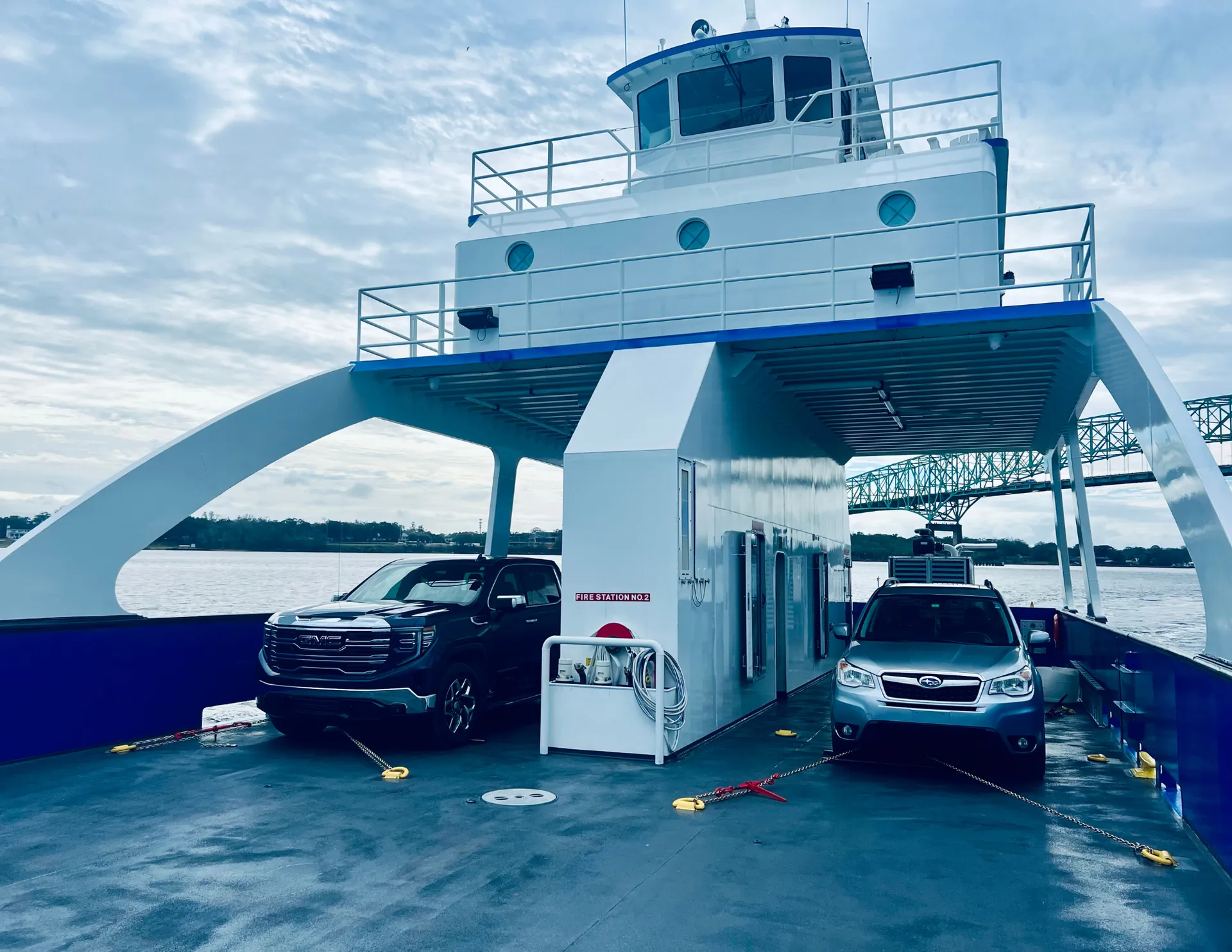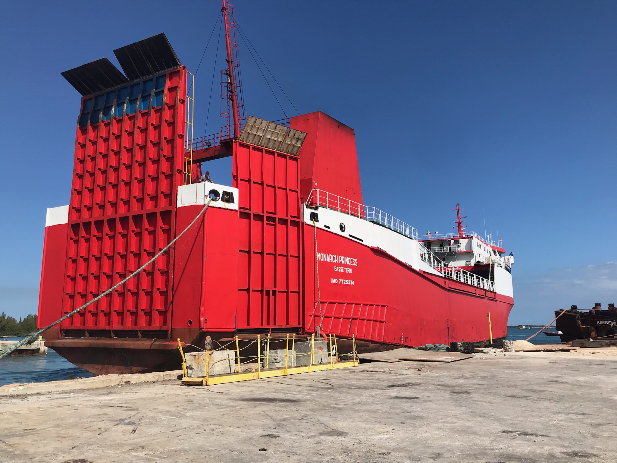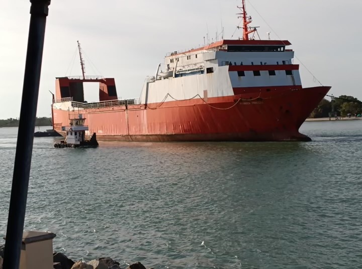 A ramped RO-RO ship.